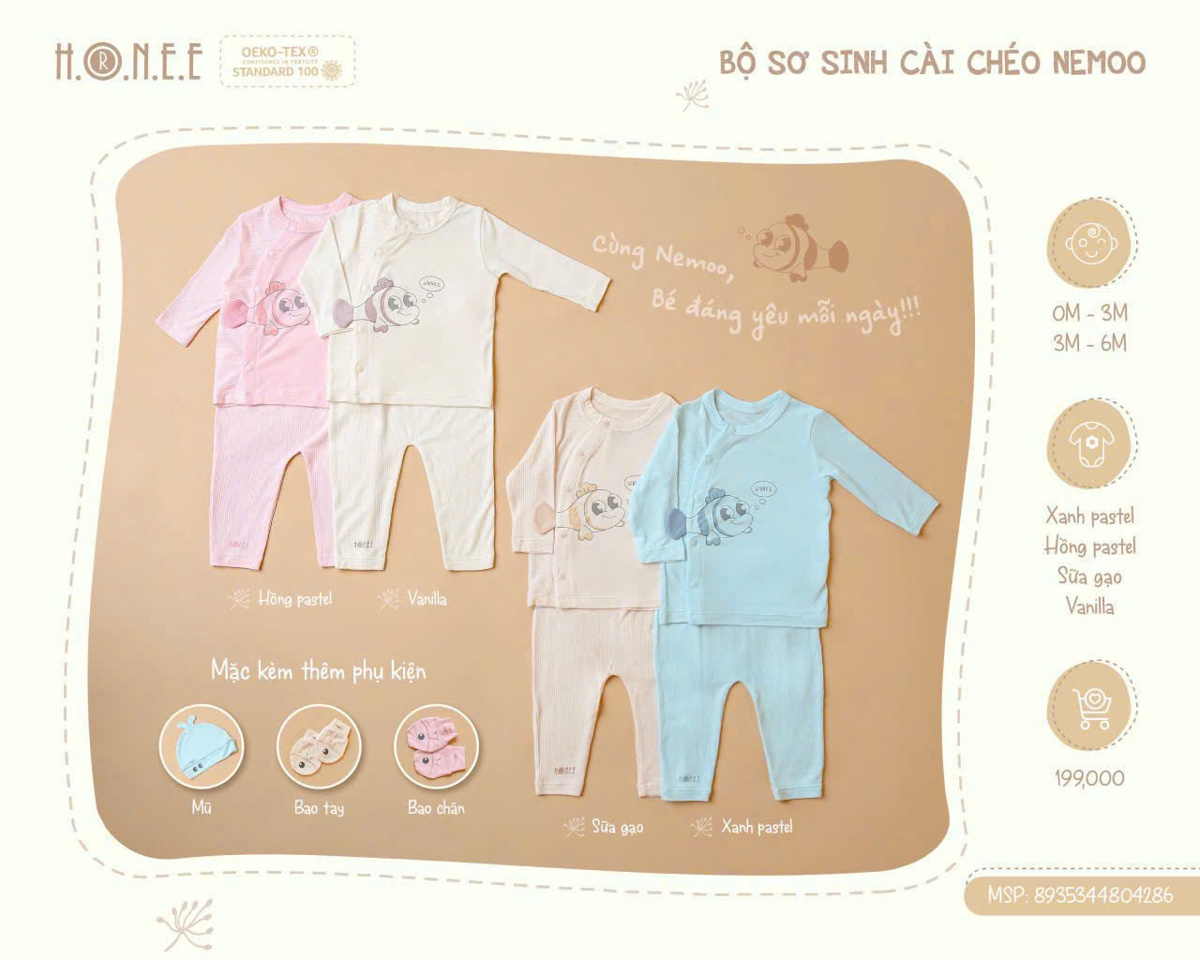 Bộ sơ sinh cài chéo Nemoo Honee