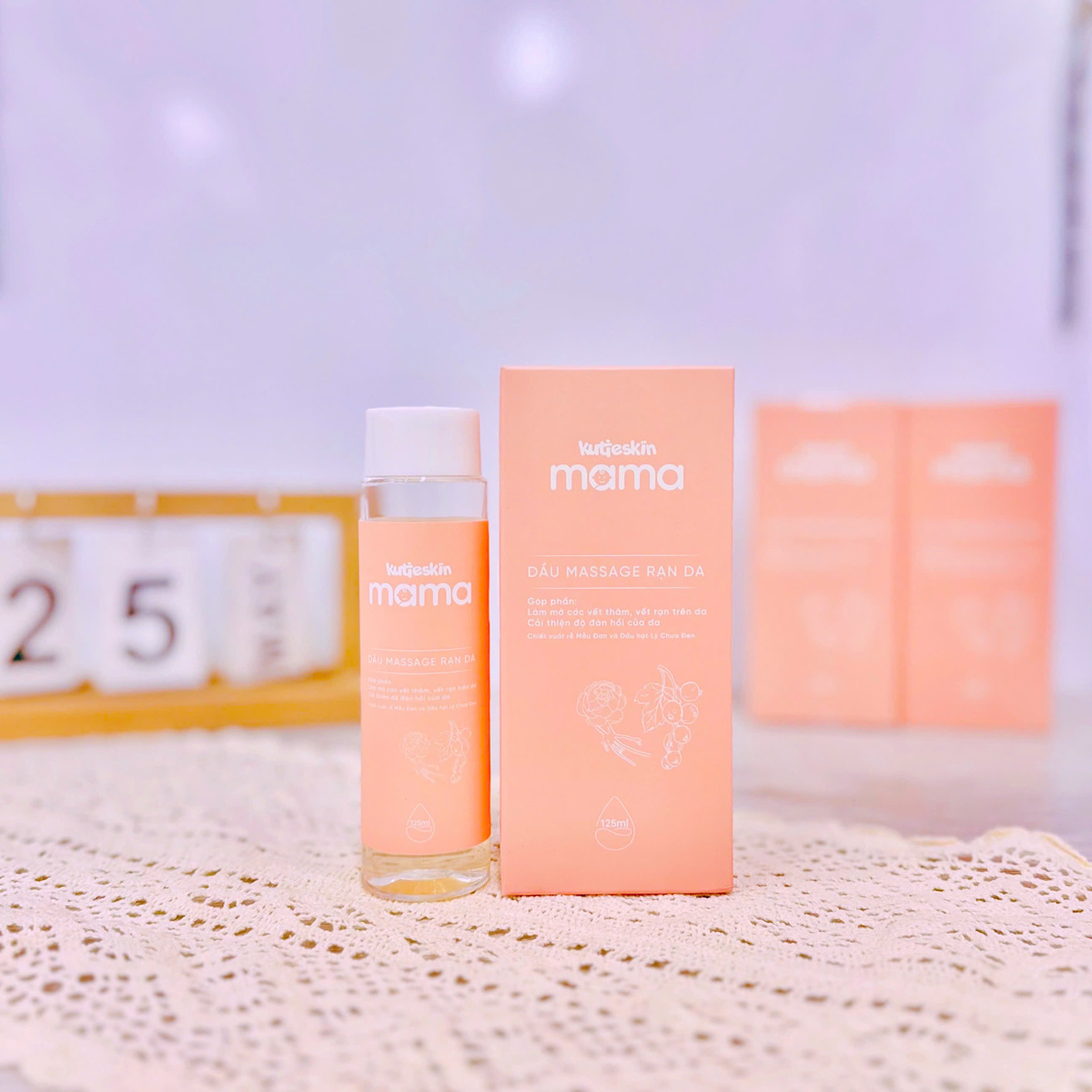 Dầu massage rạn da Kutieskin Mama giúp chăm sóc và dưỡng ẩm da, góp phần làm mờ các vét thâm, vết rạn trên da, cải thiện độ đàn hồi cho làn da mềm mại, mịn màng, tươi sáng.