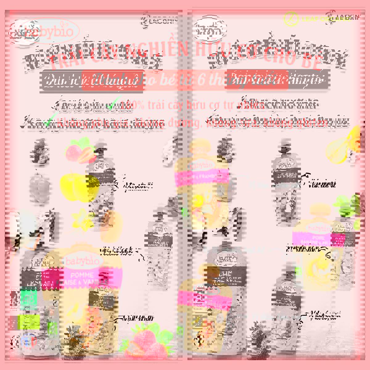Hoa quả nghiền hữu cơ BabyBio 90g (6m+)