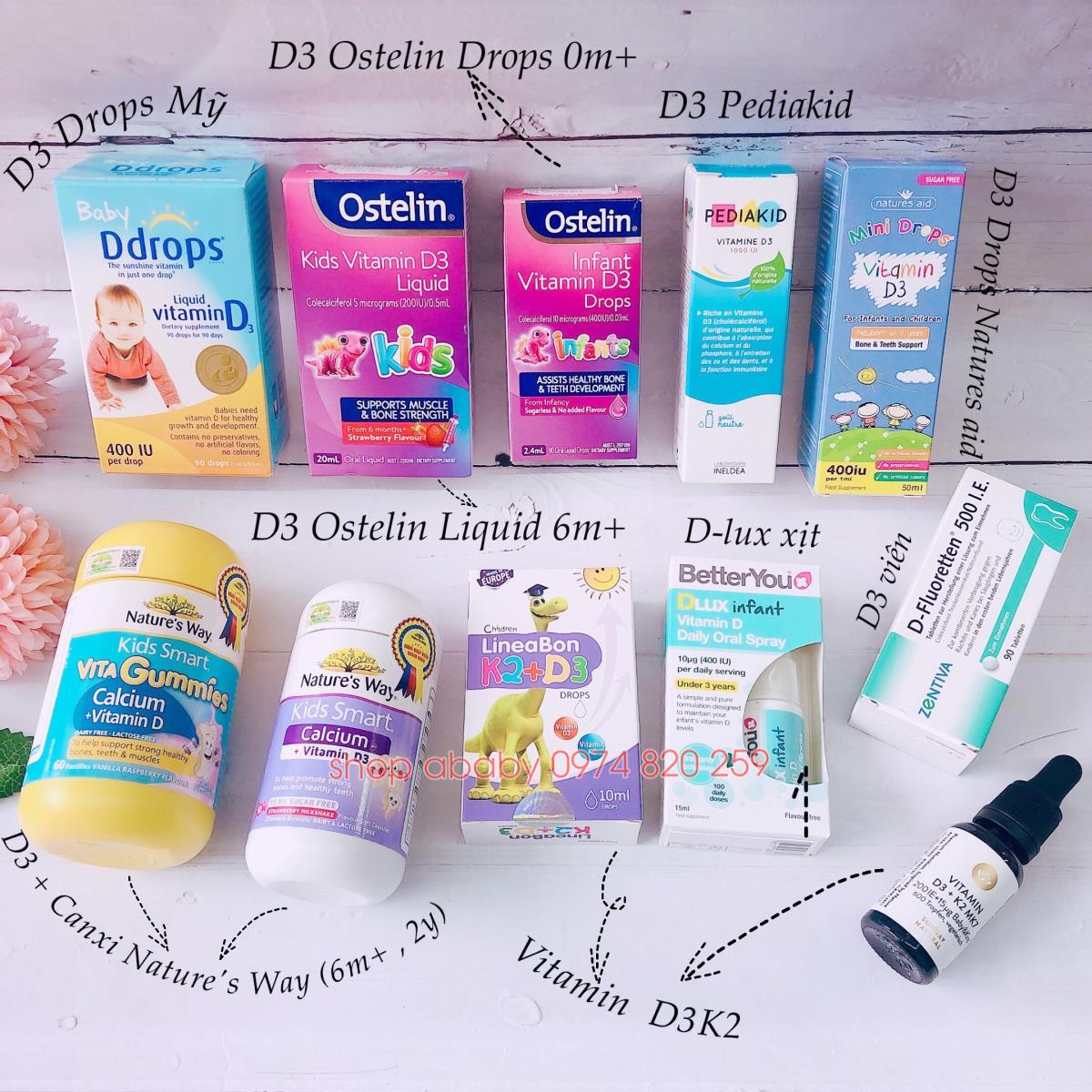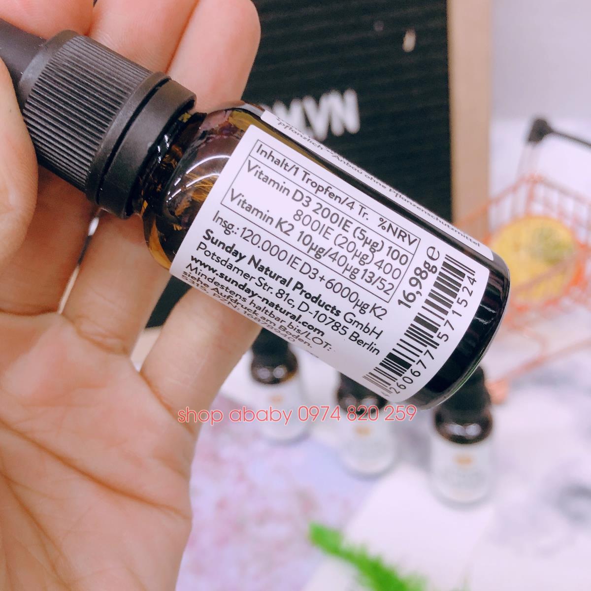 - 1 lọ có 600 giọt - mỗi giọt là 200IU vitamin D3 (giúp hấp thụ canxi qua thành ruột) + 10 Mg K2
